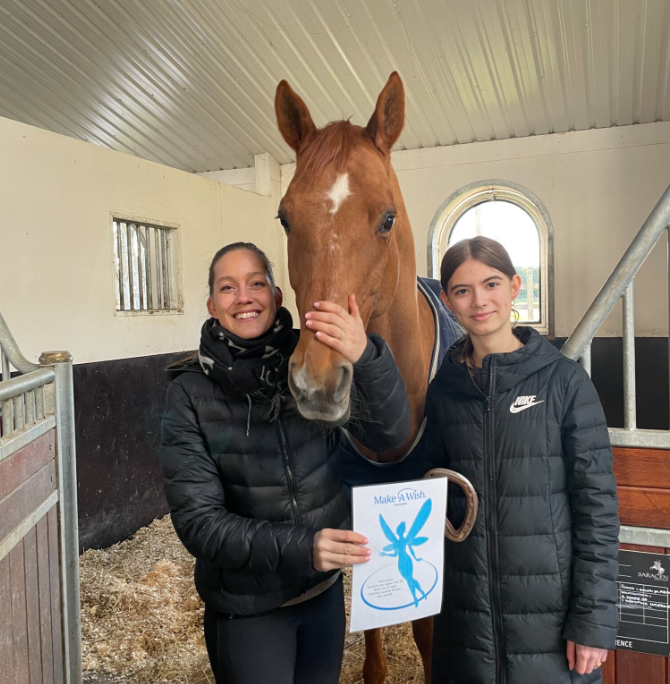 I februar blev Nomi på 15 år, der er ramt af knoglekræft overrasket med en flot kage med teksten: Kære Nomi, tillykke! Din drøm om at møde den internationale stjernerytter Cathrine Laudrup-Dufour bliver opfyldt!